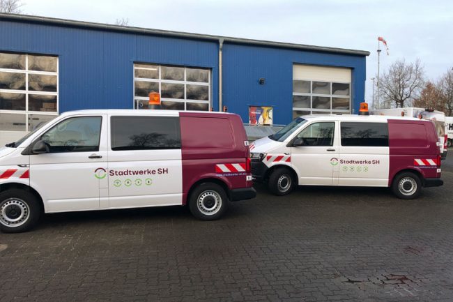 Stadtwerke SH Eine Flotte – ein Look! Sie verfügen über einen Fuhrpark, den Sie einheitlich und aufmerksamkeitsstark in Ihrem Corporate Design beschriften möchten? Dann sind Sie bei Hehne Werbetechnik bestens aufgehoben.