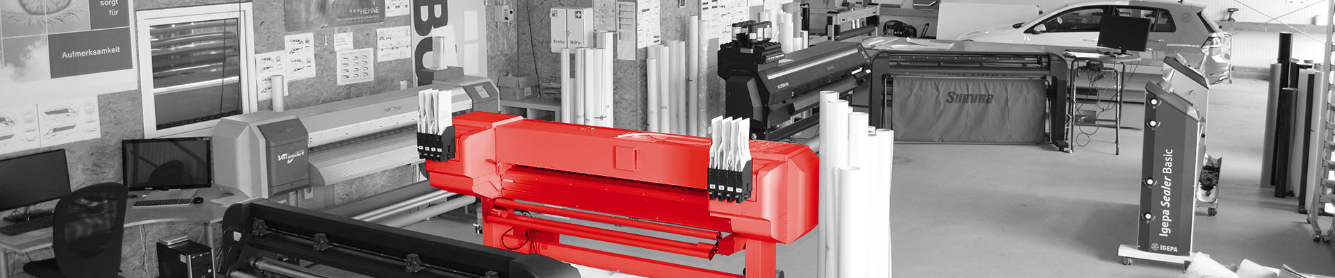 Größere Auflagen gehören, wie auch die Weiterverarbeitung (Plot, Cut, Veredelung), zu dem Workflow in unserer Produktion. Ein kompromissloses Farbmanagement und eine professionelle Drucksoftware unterstützen uns dabei, auf sämtlichen bedruckbaren Materialien ein für Sie optimales Ergebnis zu erzielen. Andrucke (Proofs) von Bildern oder farbverbindliche Testdrucke erstellen wir Ihnen auf Wunsch gerne.